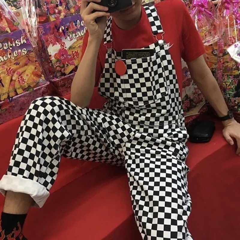 Special Offer プラスサイズストリートヒップホップストレートワイド脚オーバーオール綿デニムパンツ2020サスペンダージャンプスーツのチェック柄ズボン Discount 34% Today!