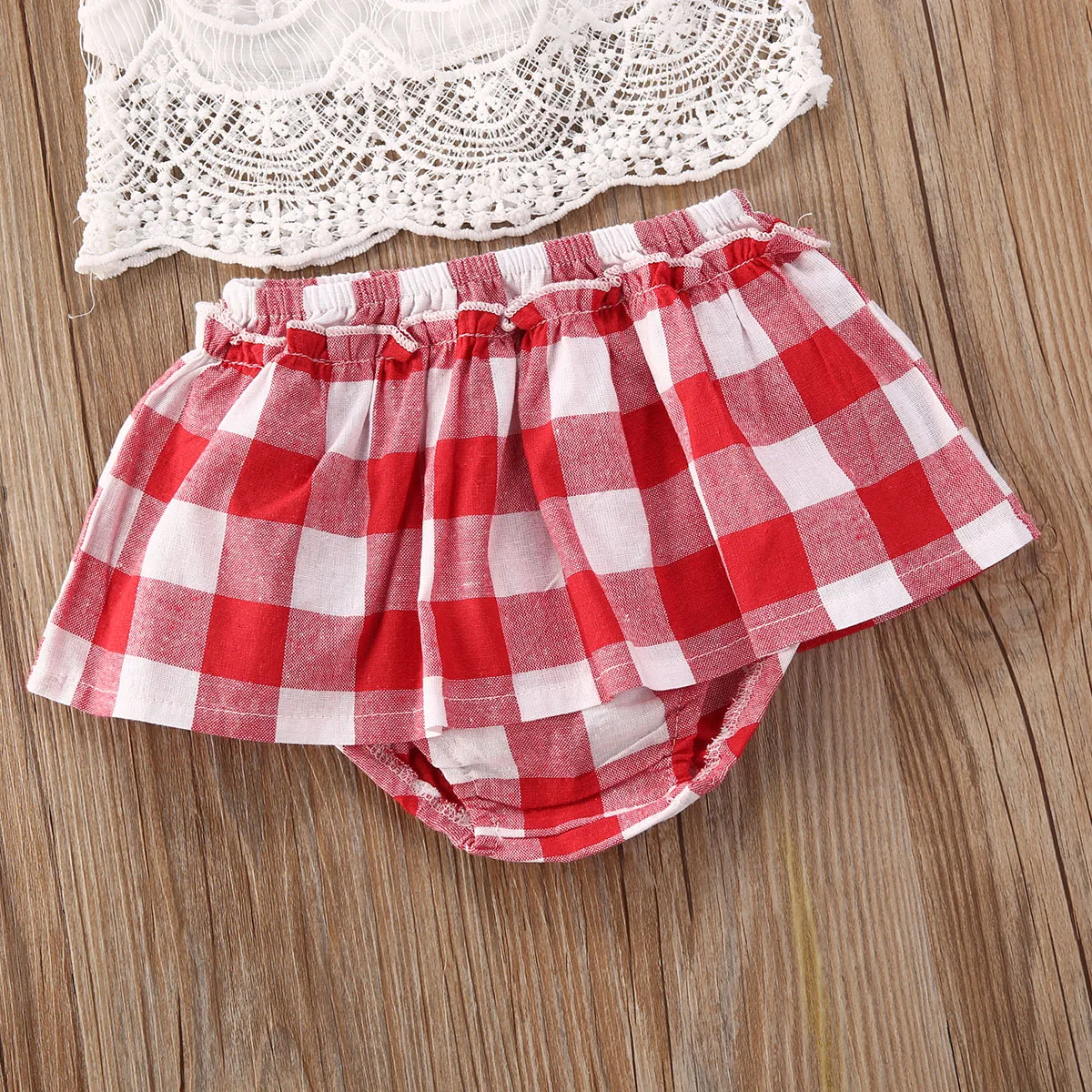 Special Offer 夏の幼児 3 個子供服女幼児衣装レーストップスtシャツフリルチェック柄ショートパンツパンツヘッドバンド服セット Discount 37% Today!