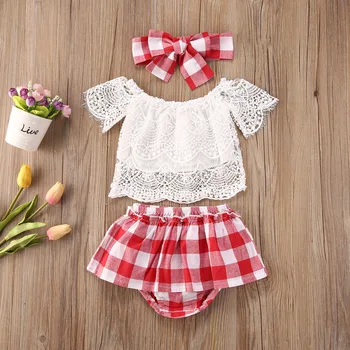 . (37% Off) 買取 夏の幼児 3 個子供服女幼児衣装レーストップスtシャツフリルチェック柄ショートパンツパンツヘッドバンド服セット オンライン 価格.