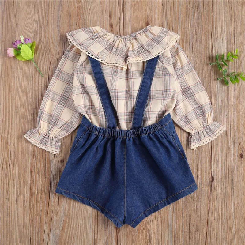 . (48% Off) 買取 2個新生児カジュアル衣装女の子長袖フリル襟チェック柄プルオーバー + ショートサスペンダーパンツ オンライン 価格.