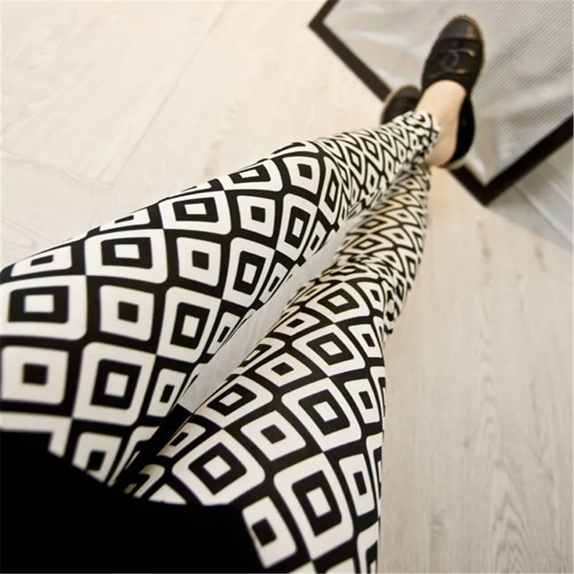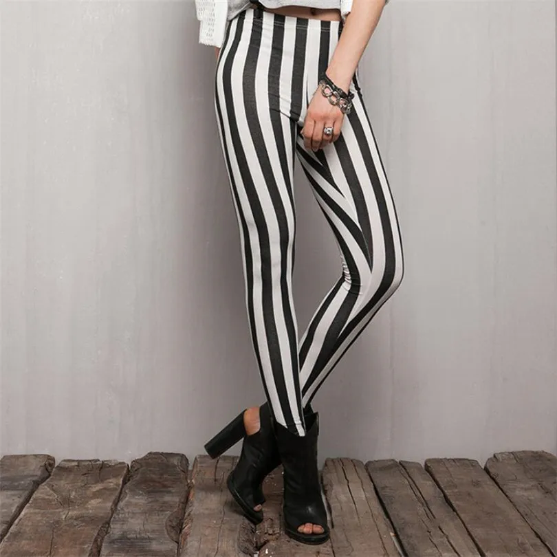 . (5% Off) 安い Ygyeeg ブラックホワイト縦ストライププリントパンツ女性レギンスファッションカジュアル弾性足首の長さの女性 Fitnes レギンス オンライン 価格.