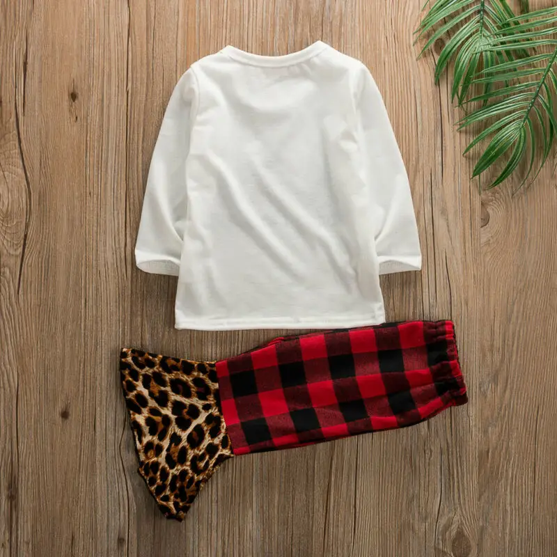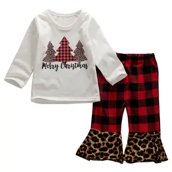 Special Offer クリスマス幼児ベビーキッズガールズ服かわいい服長袖 Tシャツトップスヒョウ毛布ズボンフレアパンツ 2 個セット Discount 0% Today!