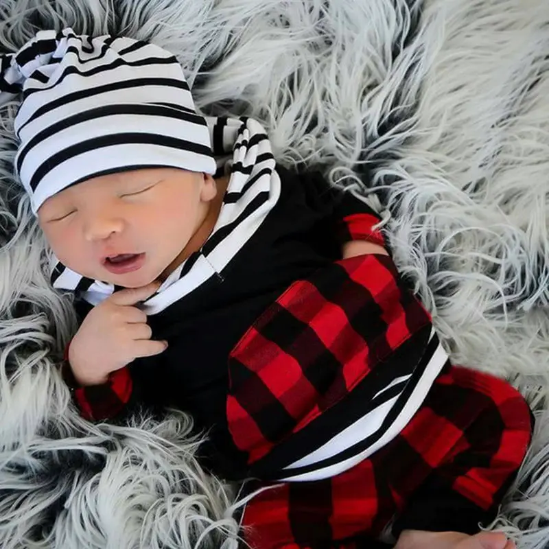 Special Offer 2 個長袖チェック柄とストライプパーカートップとパンツトラックスーツ男の子用に設定服 Discount 20% Today!