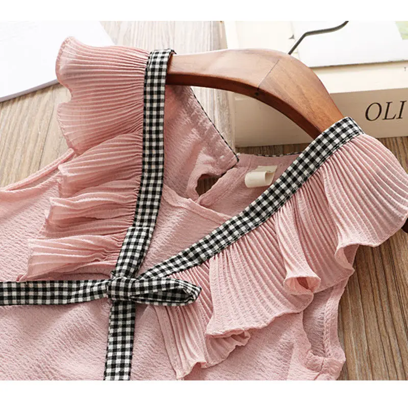 . (30% Off) 安い ファッションの幼児の女の子服 Tシャツノースリーブトップ + チェック柄ショートパンツ 2 個セット子供子供服 オンライン 価格.