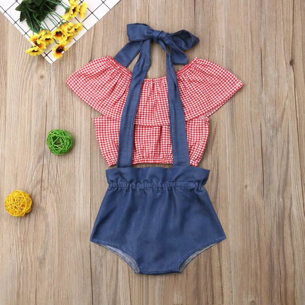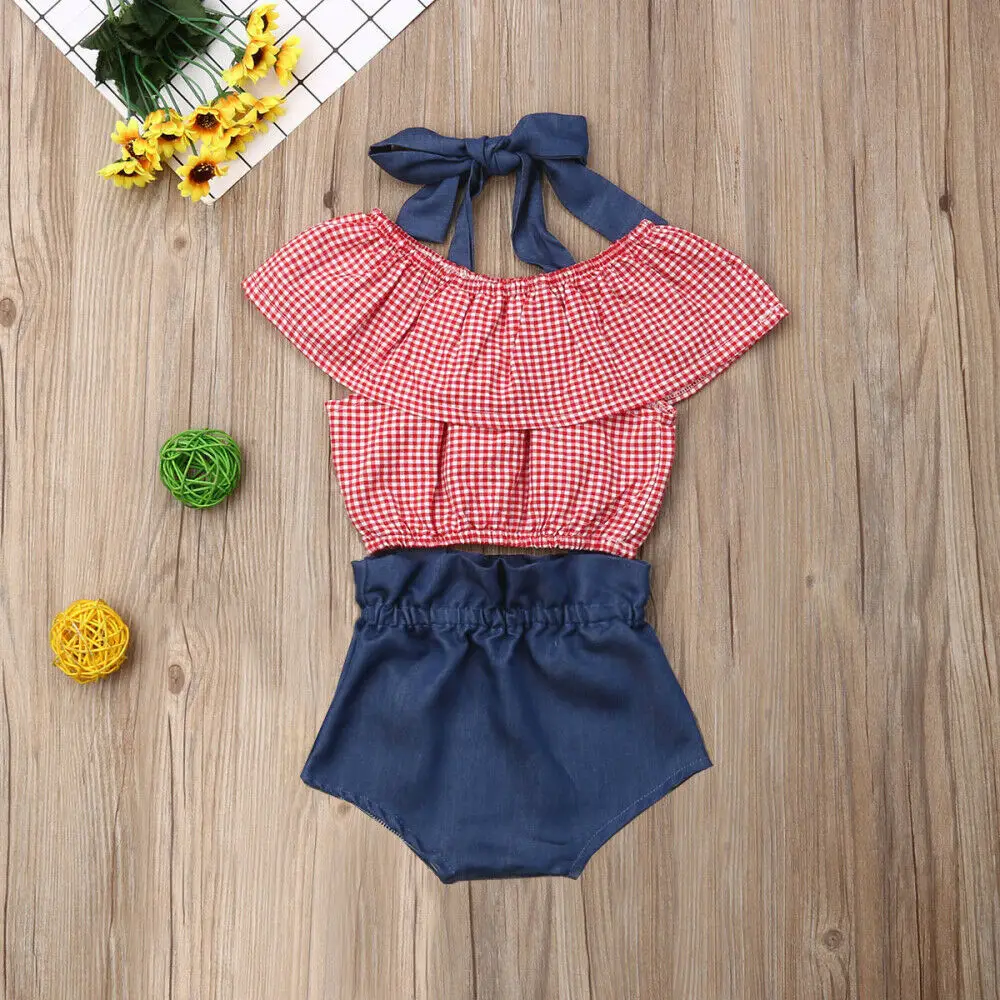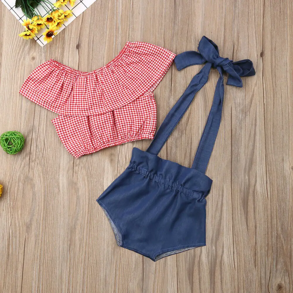 . (10% Off) 安い Pudcoco 2019 夏の子供服新生児幼児ガールチェック柄クロップトップスデニムショーツオーバーオールよだれかけパンツカジュアル衣装サンスーツ 通販 価格.