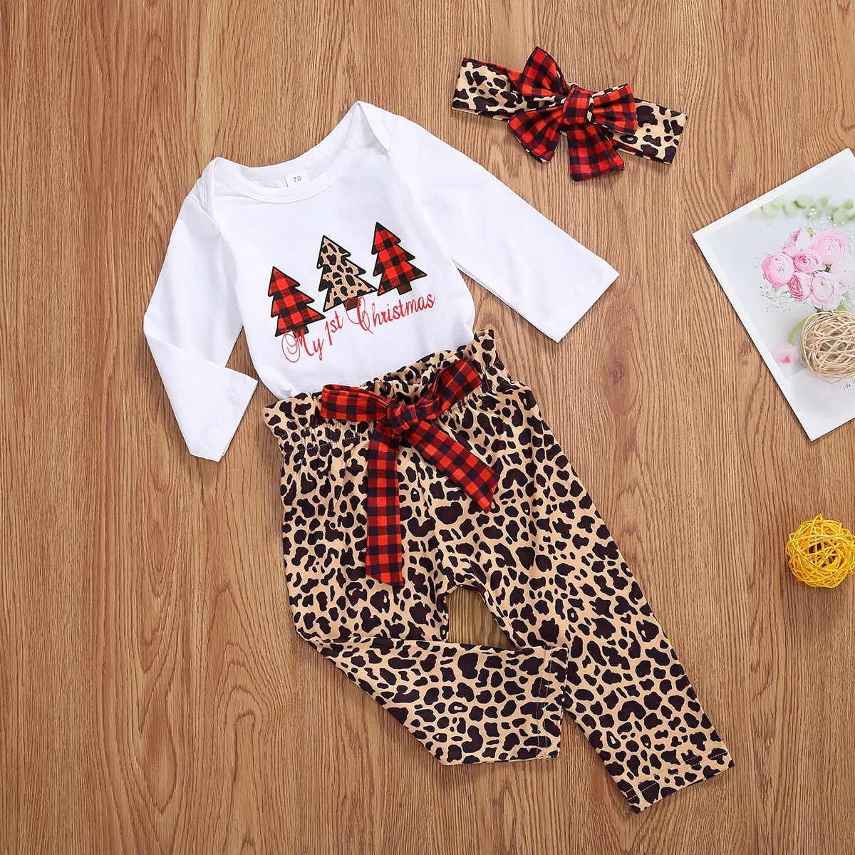 . (21% Off) 買取 私 1stクリスマスベイビーガールドレス 3 個服長袖ロンパース + チェック柄/ヒョウ柄パンツ + ヘッドバンド新生児女の子クリスマス服 0-12m オンライン 価格.
