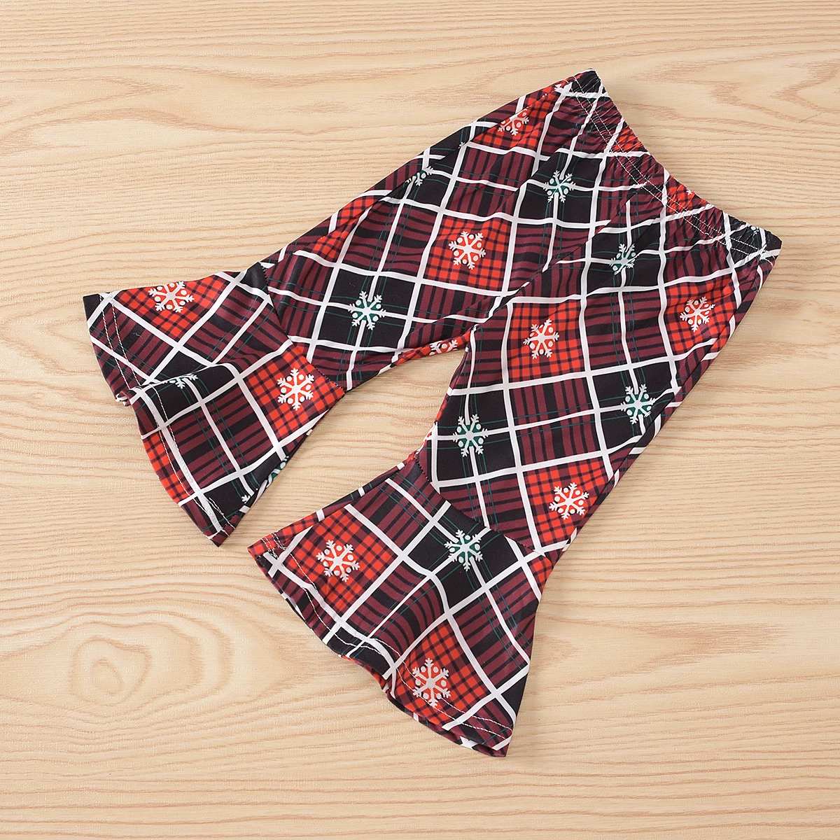 Special Offer 2020チェック柄子供レースビッグ弓オフショルダー長袖トップス + フレア長ズボンクリスマスパーティーキッズガールズ2個 Discount 33% Today!