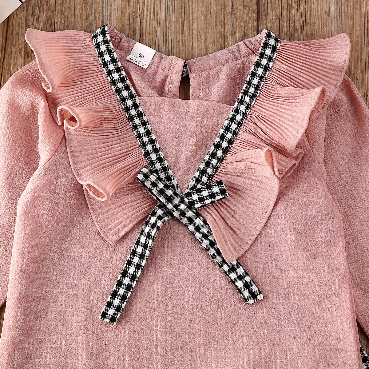 . (40% Off) 安い 幼児少女二枚セットフリル長袖トップとチェック柄パンツ子供スーツセット服 オンライン 価格.