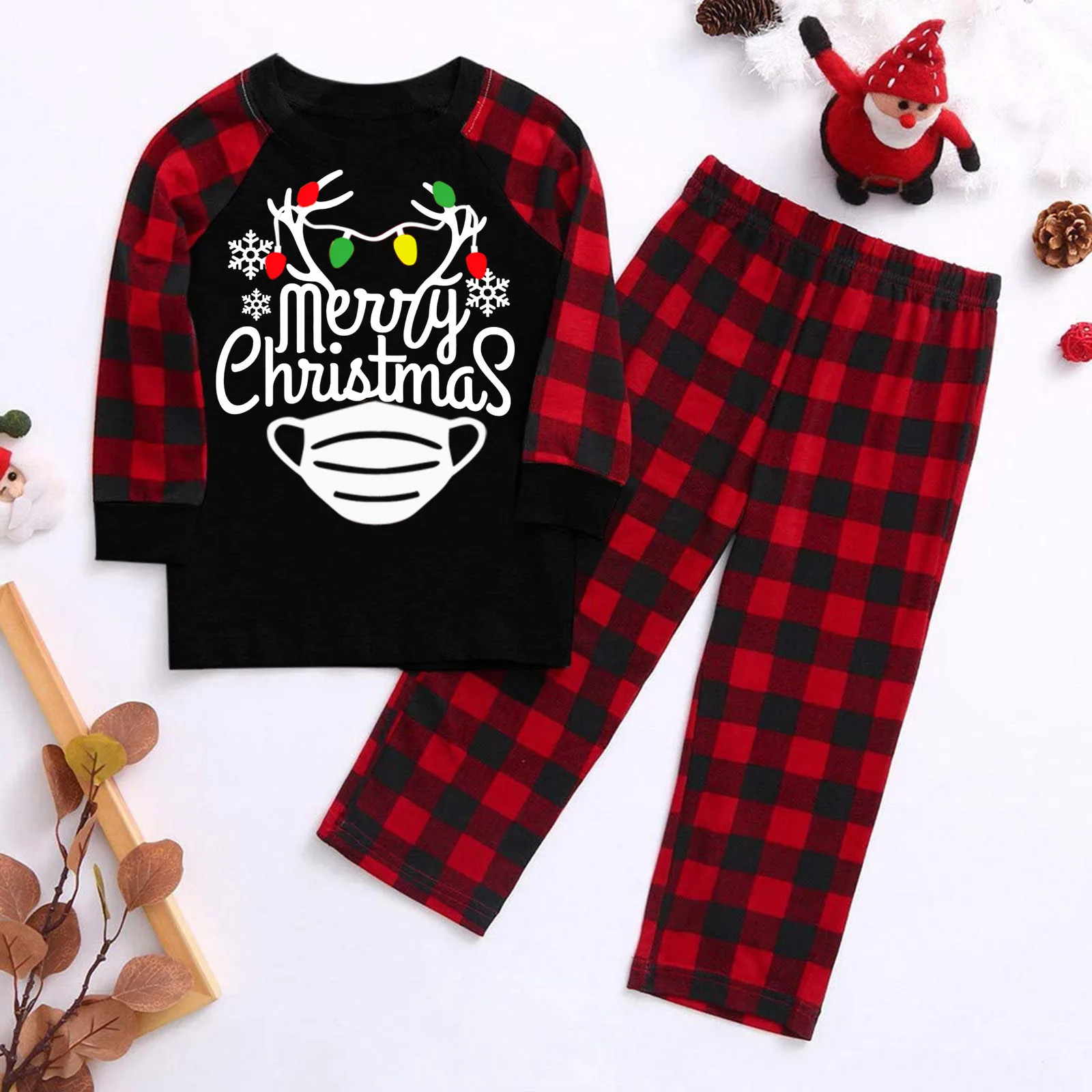 Special Offer 新しいクリスマス家族パジャマセット大人の子供パジャマパジャマ2個セット鹿トップス + チェック柄パンツクリスマスファミリールックマッチング衣装 Discount 45% Today!