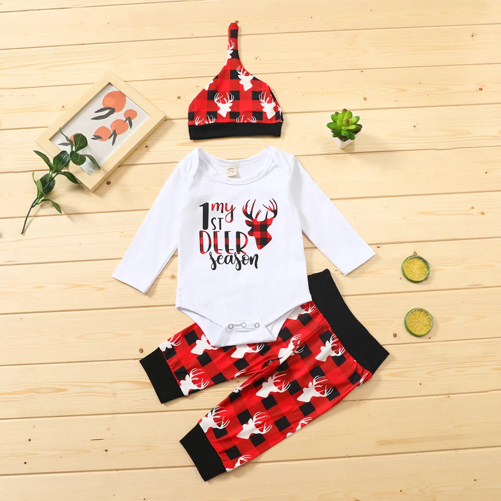 . (46% Off) 買取 幼児ボディスーツロンパース + チェック柄パンツ + 帽子衣装 рождество ベビーボーイズ · ガールズのクリスマス手紙ファッションかわいいプリント長袖 通販 価格.
