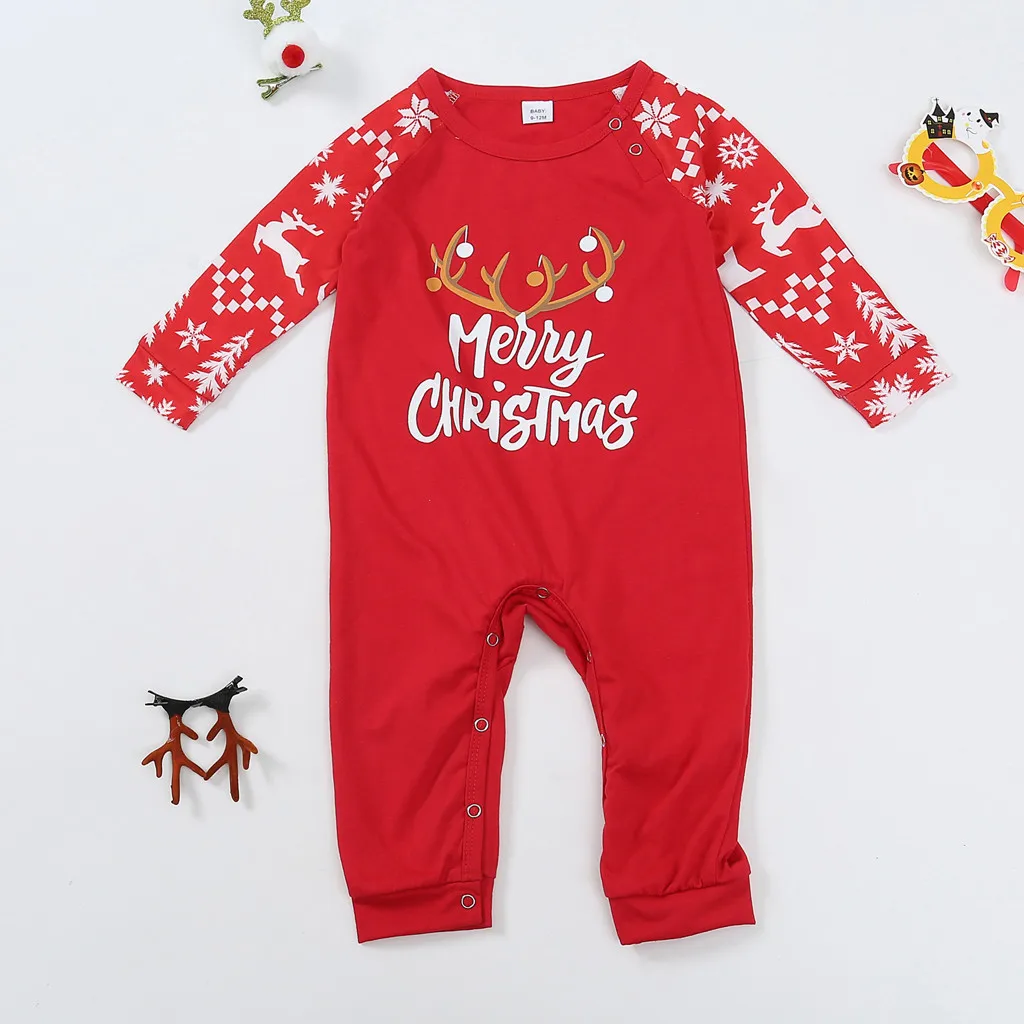 Product Name: 家族マッチングクリスマスパジャマセット男性女性キッズベビートラックスーツナイトウェア赤チェック柄綿黒固体トップスパンツカジュアル