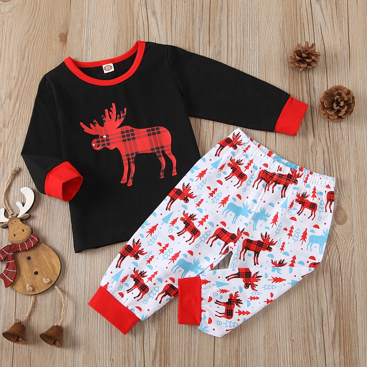 . (30% Off) 買取 2個子供ユニセックス秋パジャマセットクリスマスヘラジカプリントoネックロングスリーブトップ + 弾性ウエストパンツのための女の子男の子 通販 価格.