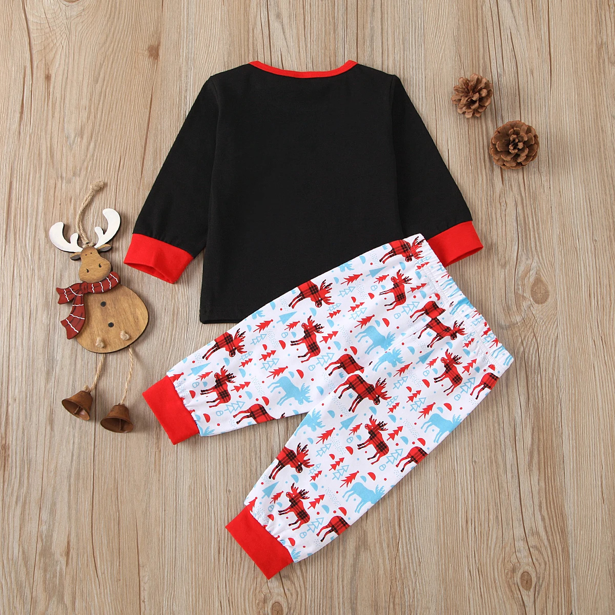 Special Offer 2個子供ユニセックス秋パジャマセットクリスマスヘラジカプリントoネックロングスリーブトップ + 弾性ウエストパンツのための女の子男の子 Discount 30% Today!