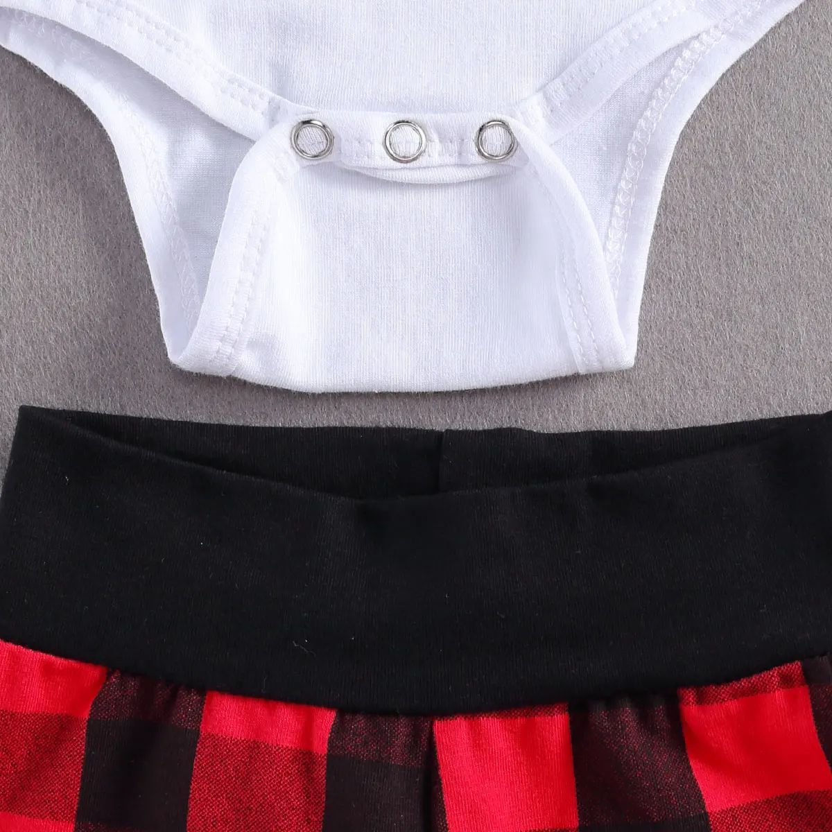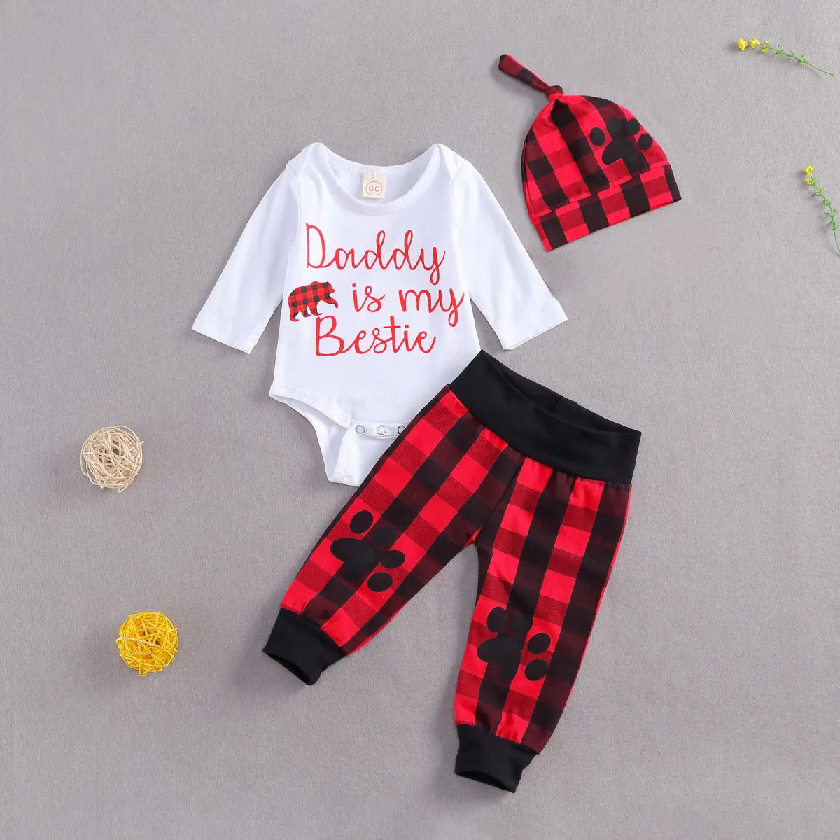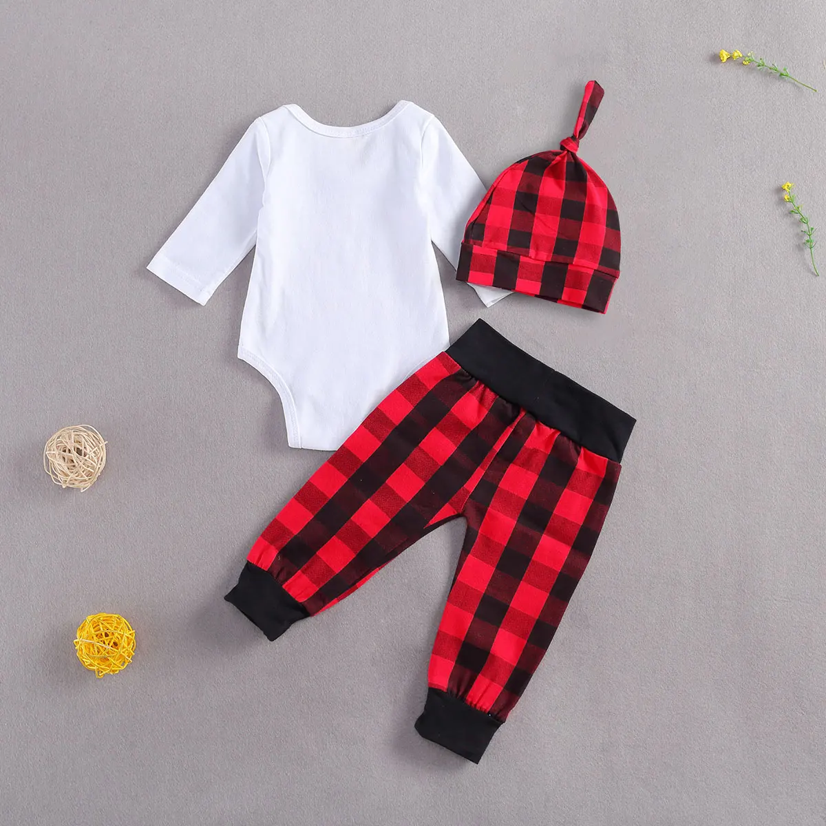 Special Offer クリスマス新生児服かわいいスリーピース綿のスーツの手紙ロンパーストップ赤のチェック柄パンツ帽子衣装 Discount 30% Today!
