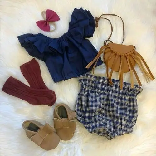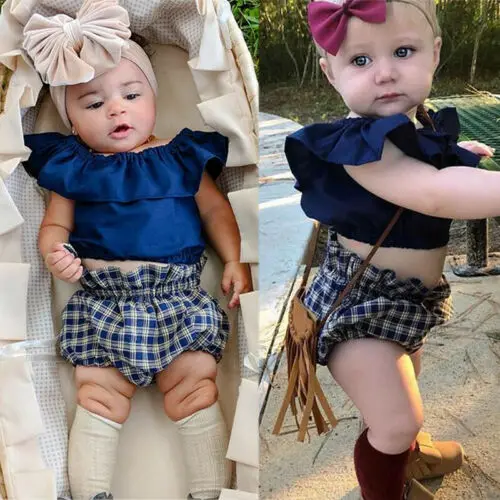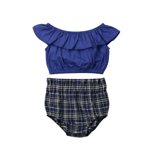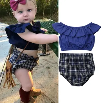 . (23% Off) 安い 夏の新生児の女の子服固体フリル作物トップス毛布パンツ衣装のセット 通販 価格.
