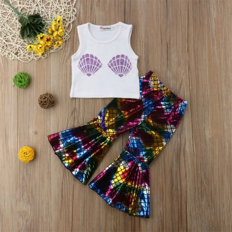 . (30% Off) 買取 Pudcoco 2 個幼児の子供の女ノースリーブファッションマーメイドトップスフレアパンツアウトフィット服 通販 価格.