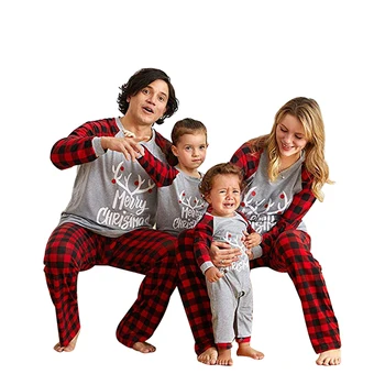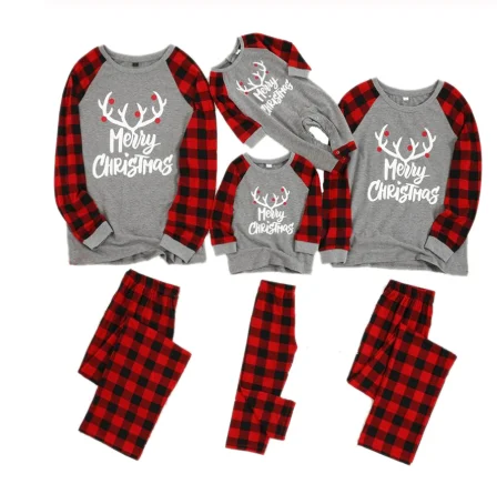 . (33% Off) 激安 クリスマス家族マッチングパジャマpjsセットクリスマス枝角レタープリントtシャツチェック柄ロングパンツ2個カジュアルパジャマnightwears オンライン 価格.