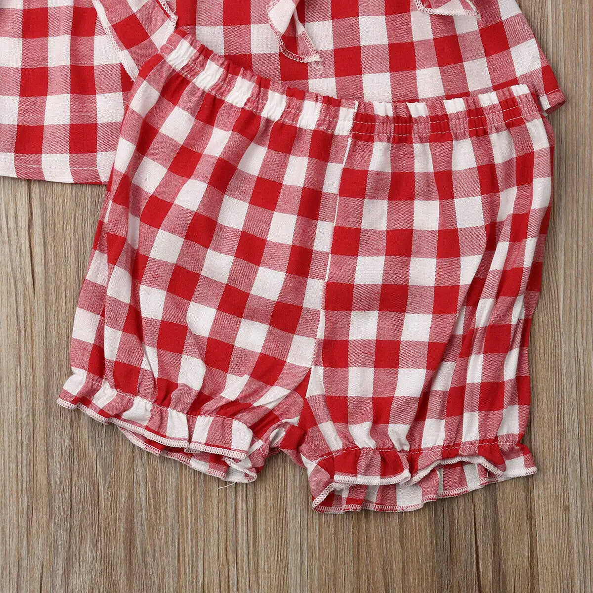 Special Offer 新生児幼児幼児キッズベビーガールズチェックノースリーブ背中の開いちょう Tシャツトップスドレスパンツショーツドレスセット服 Discount 20% Today!